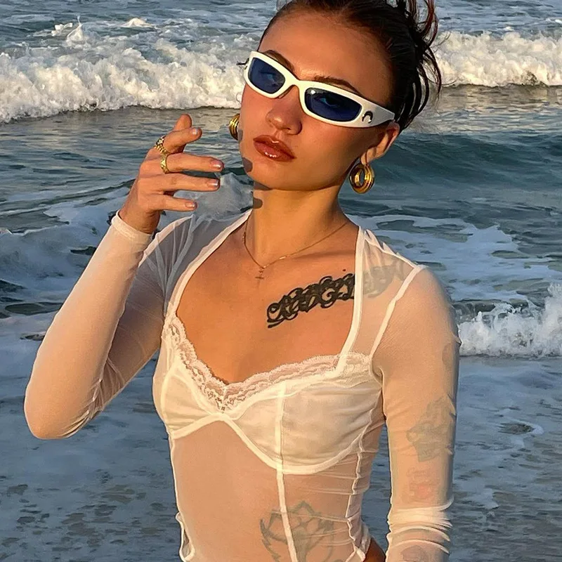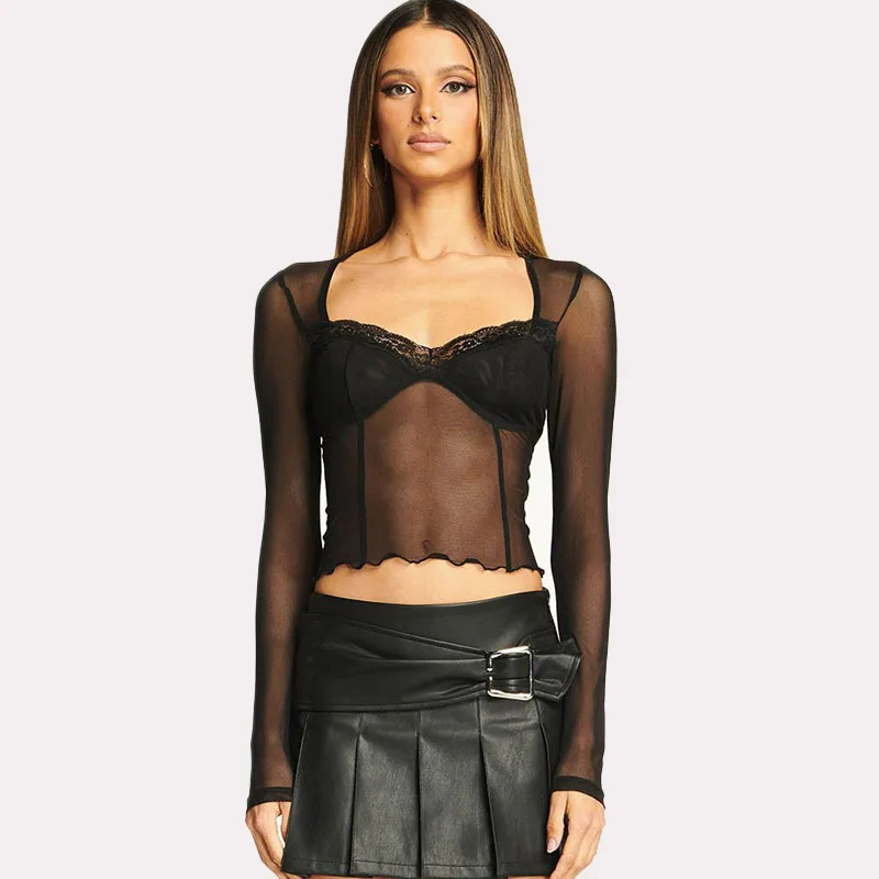 2025 Summer Blouse See Through Mesh Women Corset Tops Slim Elegant Sexy Shirt